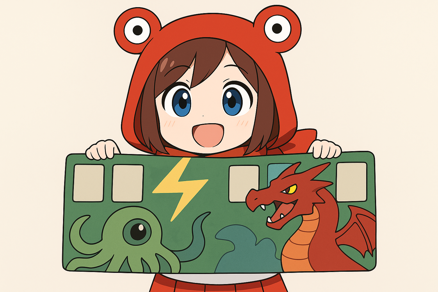 プレイマットは折り畳んで保管・持ち運びをしてしまうる折り目がついて凸凹になってしまうので使わない時は基本的に巻いて保管するのが一般的です。