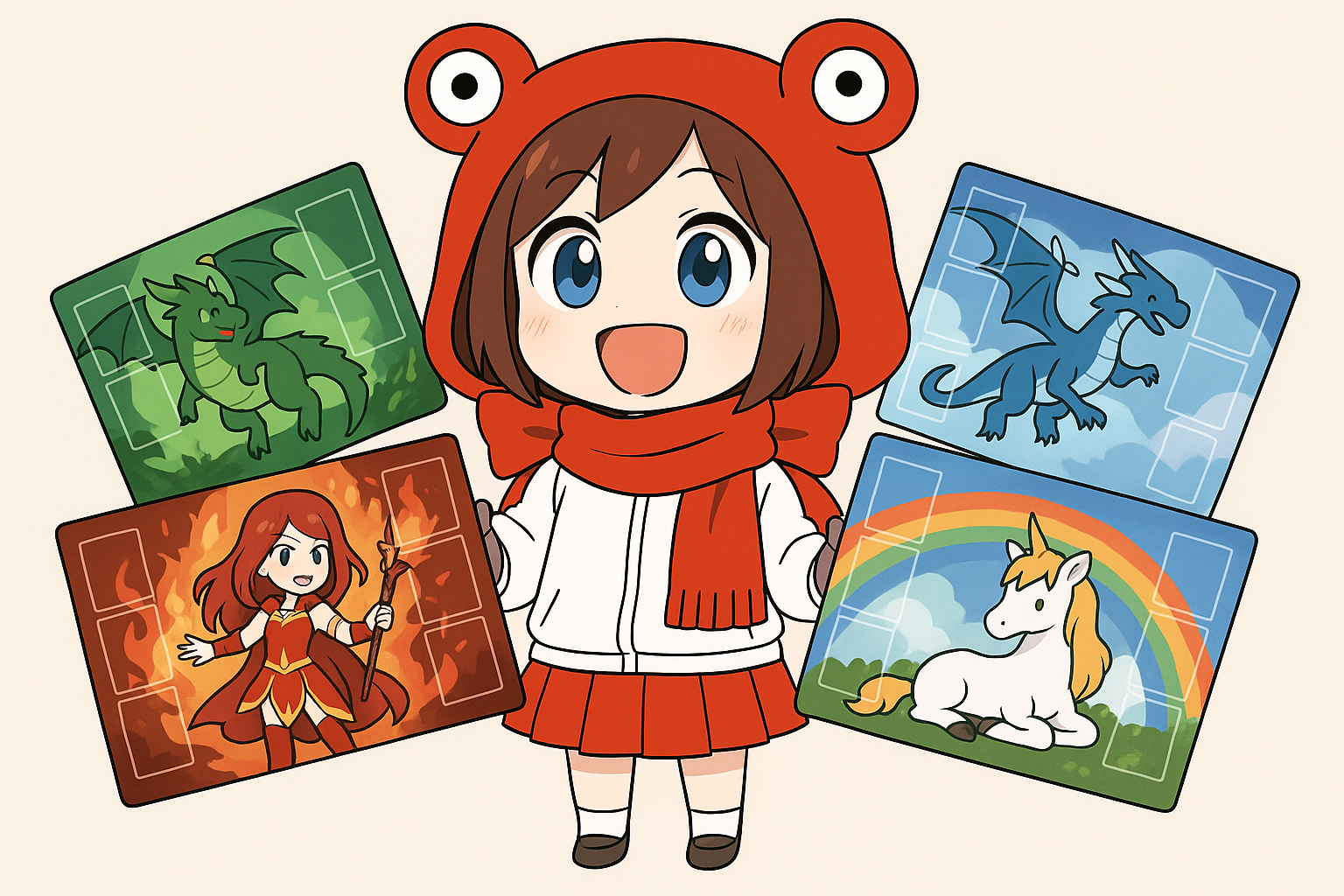 カードゲームは、それぞれカードを置く場所や置き方違うので、プレイマットのサイズも異なります。